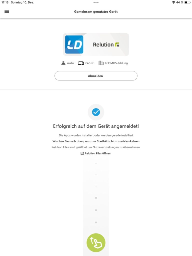 Nachdem du dich aktiv bei LD-Mobile angemeldet hast, öffne nun die App "Relution Files".